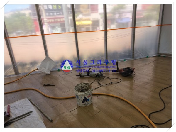 공장 연약지반 보강을 위한 팽이공법 시멘트 밀크 그라우팅 시공