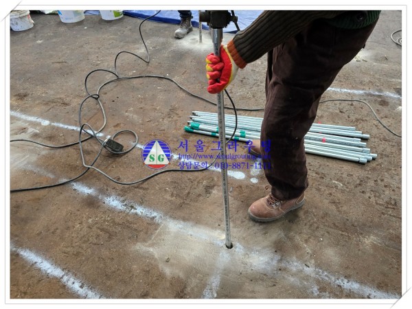 공장 연약지반 보강을 위한 팽이공법 시멘트 밀크 그라우팅 시공